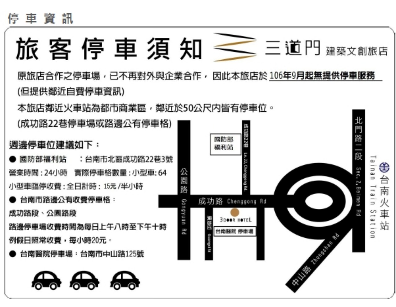 對了!旅店有提供住客免費租借腳踏車喔,如果需要短程在市區裡面吃吃喝喝,就不用客氣騎著穿越台南的大街小巷,這樣絕對是最方便的唷,優質的住宿環境,親切的管家服務,超值的優惠價格,到台南旅行過節時,不妨就到三道門建築文創旅店入住吧