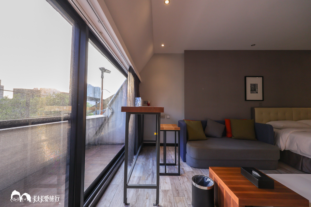 窗邊的小沙發與高腳桌很適合發呆,這樣的設計很窩心,還沒要入睡時可以有一個短暫休息的地方,夜裡還能坐著享受追劇時光