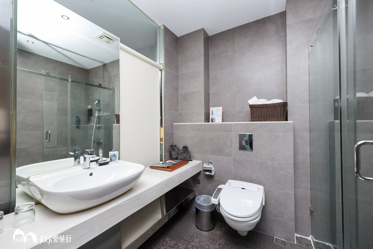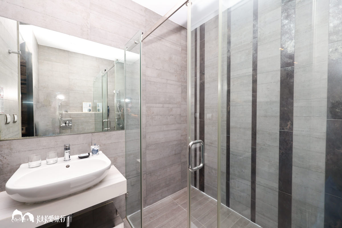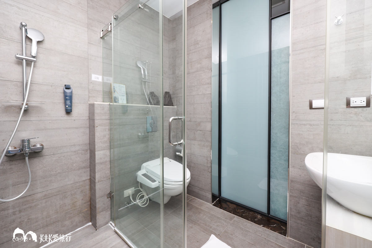 簡單乾淨明亮的衛浴空間,寬敞的乾濕分離,淋浴沖澡時熱水來的快,但水量稍嫌不足,不過不影響我們舒服洗個熱水澡