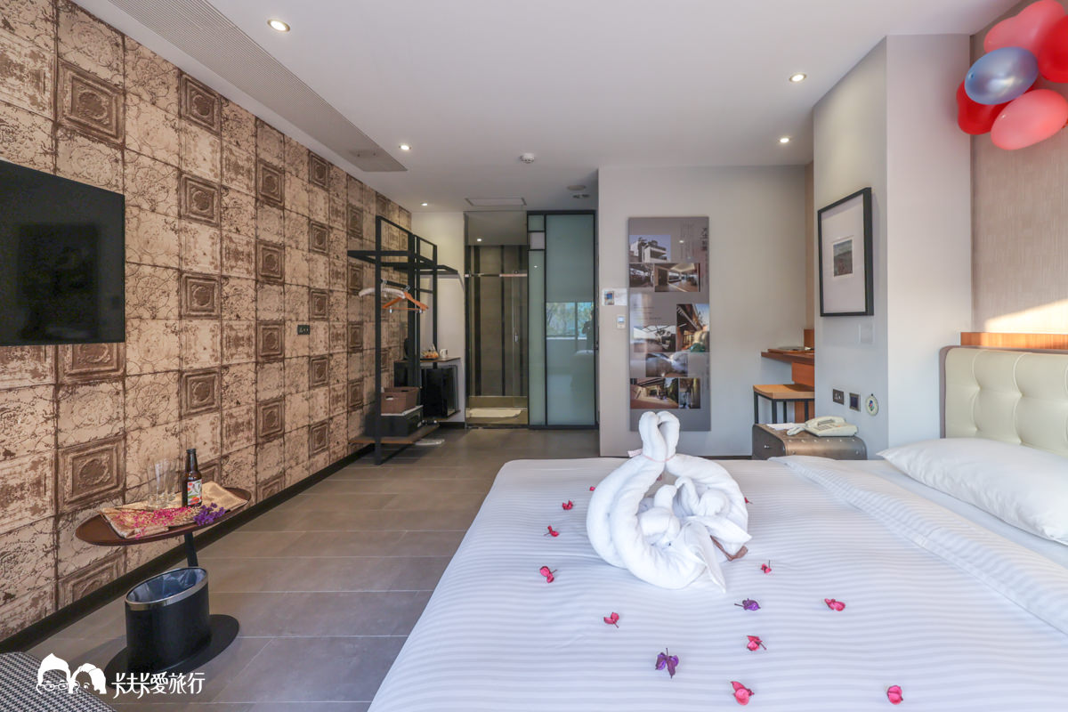 訂房時指定客製化協助佈置,美麗的夕陽光影從大片落地窗映照到房間裡,管家精心佈置出浪漫氛圍超貼心,即使只是小小的裝飾,帶來是莫大的驚喜