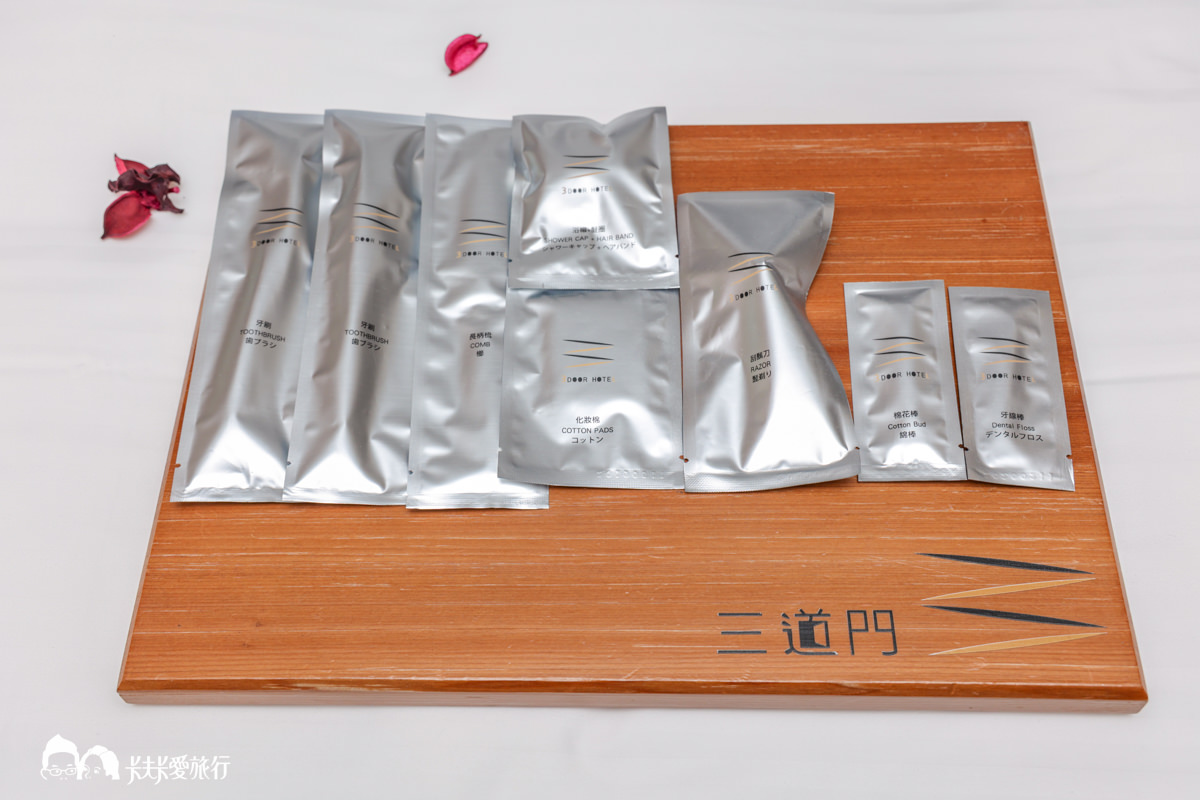 旅店會附上拋棄式的盥洗用品,有需要再拿取做使用,盡量改變習慣自備重複使用唷