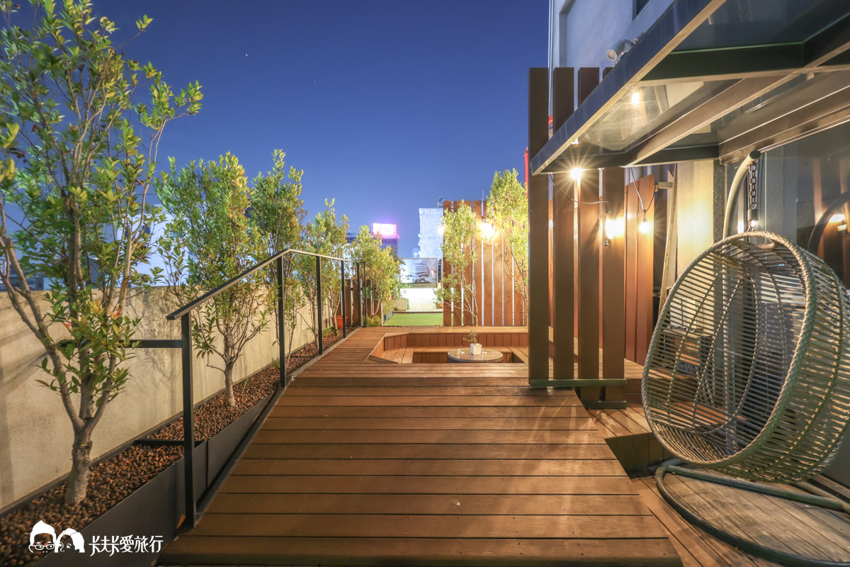 旅店裡有一座位在頂樓8樓的天空花園,由設計總監洪馬克先生所精心打造的城市秘境,有戶外天臺以及玻璃屋,提供交流閱讀、視聽會議、家庭朋友小憩的特色空間,深受許多國內外到此旅遊的遊客以及商務人士的喜愛