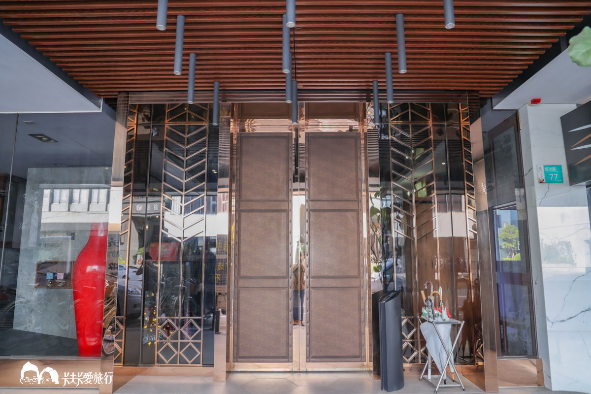 首次入住的我們,在訂房時覺得價格也太便宜,心裡有點害怕踩雷,但一到現場之後,看見建築外觀設計與玫瑰金大門散發出奢華感,心裡頓時安心不少,而且令人充滿期待,三道門建築文創旅店不是全新的建築,過去曾是樂育英才的補習班,後來轉手到三頁樓建築設計團隊,保留舊有的書香氣息,改建成極具特色的旅店