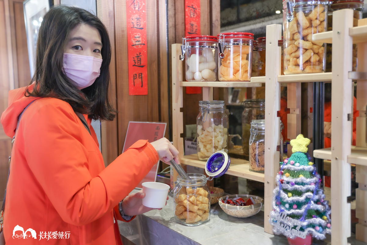 除了情人節限量專案附贈的佈置外,入住三道門建築文創旅店任何房型,房間裡頭都會附上古早味餅乾、糖果、咖啡等,等入夜嘴饞的時候最適合吃零食了