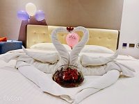 床上擺設的是用毛巾摺出來的愛心天鵝,現在外宿飯店已經很少見,感覺都快絕版了,這裡的管家真是深藏不漏
