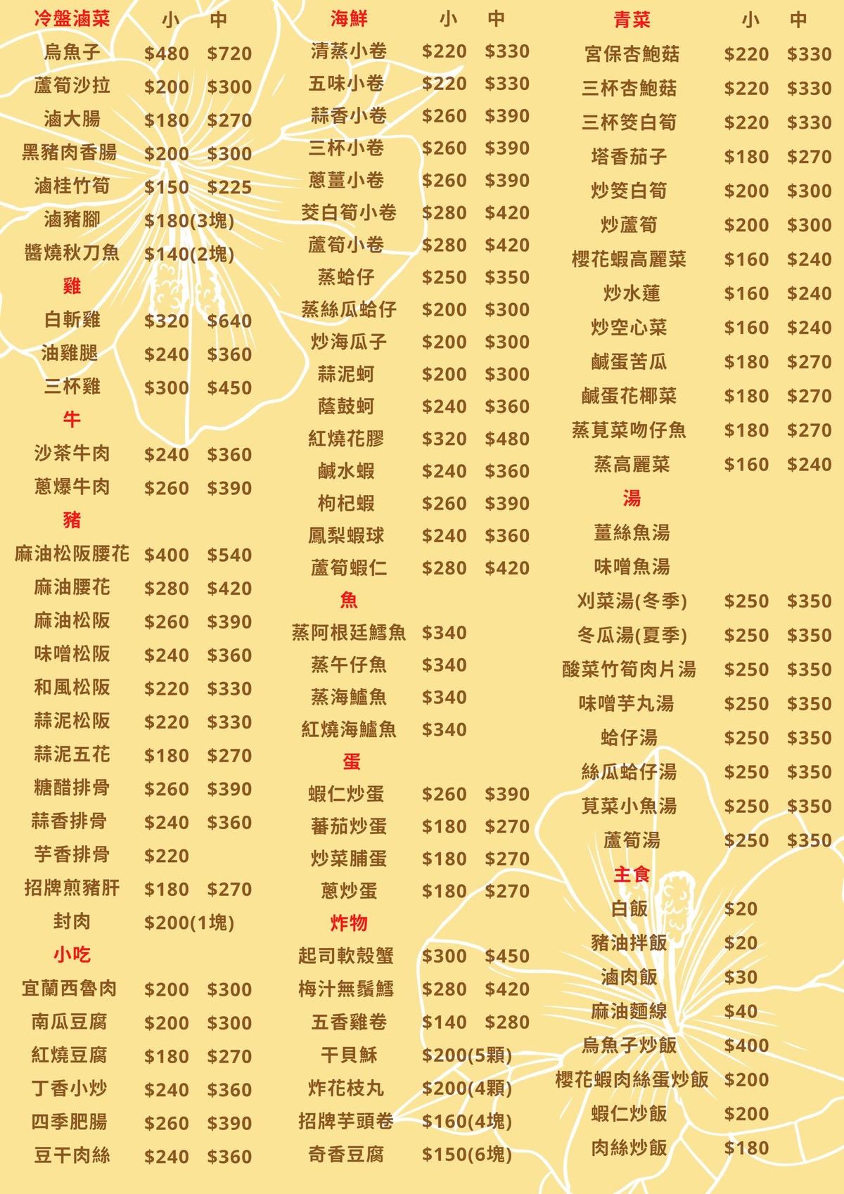 菜單標價均為小份(三個人吃剛剛好),若5位可以考慮點中份或大份