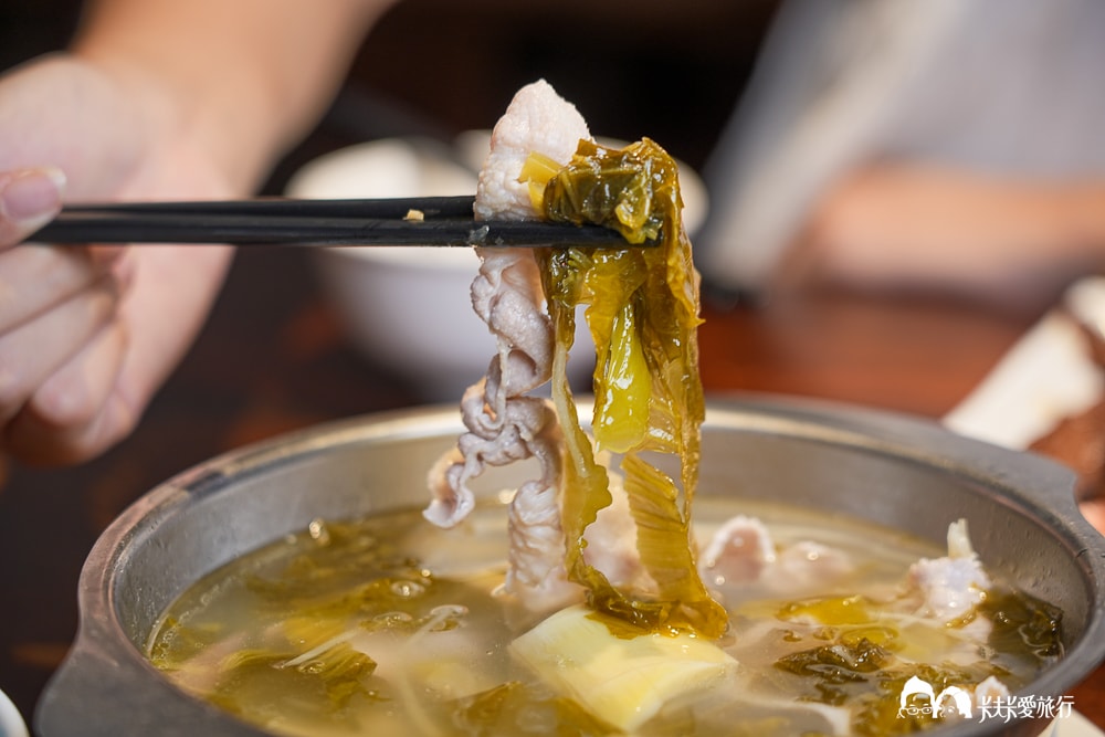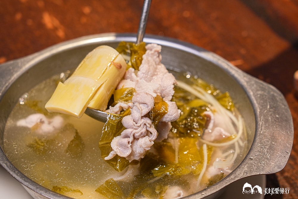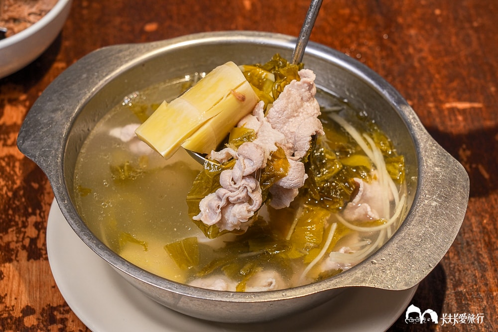 尤其裡面還有豬肉片,帶著肉香的湯頭,點綴酸菜的酸香感,這碗湯特別適合飯後解膩,我們就一碗接著一碗沒有停過,真心喝到空掉也不會膩,湯品這道必點