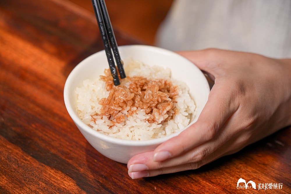 豬油拌飯的標準動作就是一定要拌一拌,米飯Q彈軟透、豬油香氣迷人,入口就是香濃古早味,也是帶外國朋友體驗台灣味的好選擇