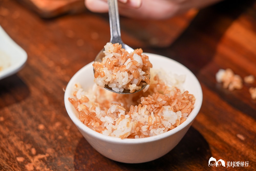 這次來吃長輩們點菜時都說我們隨便點,但看到豬油拌飯居然說一定要點想吃,好奇豬油拌飯是有什麼迷人魅力,我爸說他們小時後簡單的一匙豬油拌進熱騰騰的白飯,香氣馬上勾起味蕾的記憶,是物資匱乏時代的頂級美食