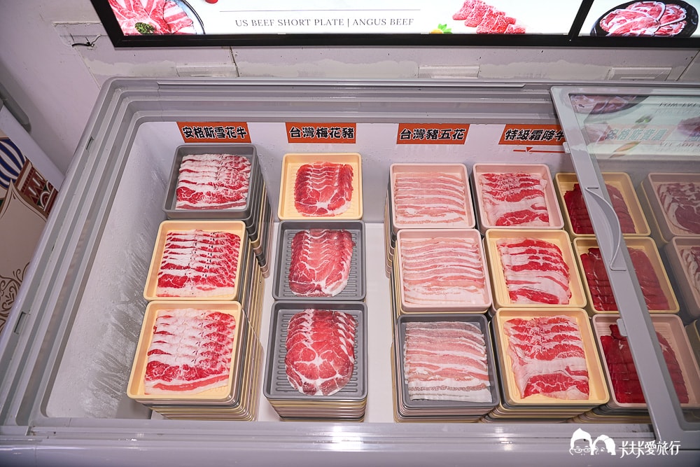 來鬼椒麻辣王羅東旗艦店,肉控一定會超級滿意,冰櫃裡整齊擺放著各式肉盤,從安格斯黑牛、沙朗、板腱,到台灣豬五花、梅花豬,選擇非常齊全,油花分布清楚可見,光看就讓人忍不住想立刻下鍋涮