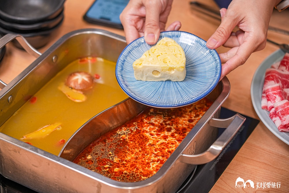 另一款大推的是「起司麻奶鍋」,整塊乳酪直接放進湯裡,慢慢融化後湯頭變得濃郁香醇,喝一口就能感受到濃厚奶香與微微辣勁的交織,讓層次更豐富