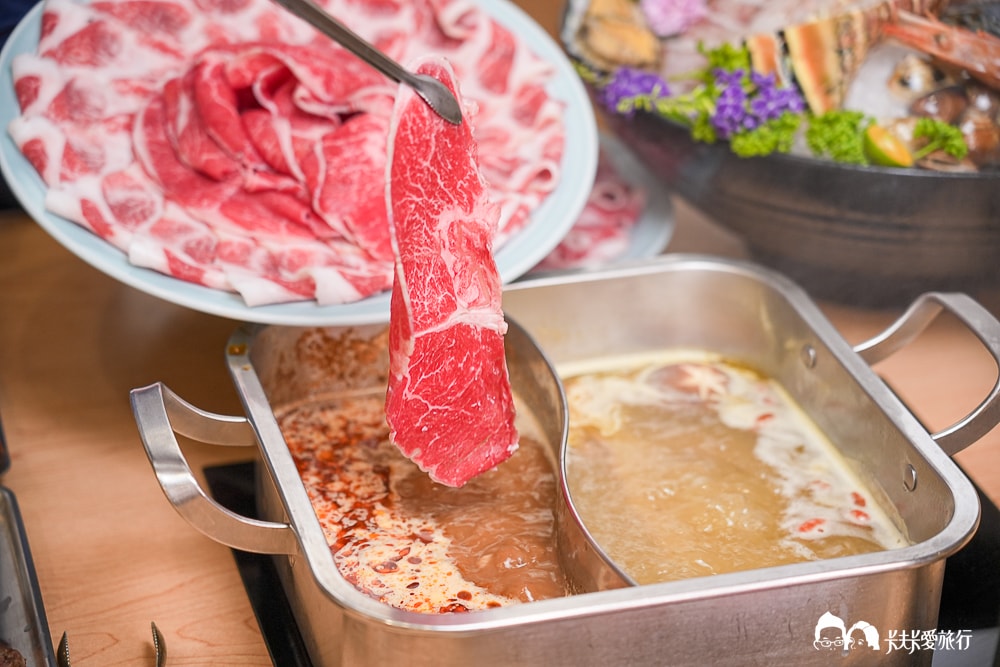 最多人稱讚的就是肉品跟海鮮真的很澎湃,和牛吃到飽方案很受歡迎,從安格斯黑牛、沙朗到豬五花都能無限加點,海鮮選擇更是大方,對愛吃海鮮的人來說完全是天堂,湯底除了必點麻辣鍋,還有人推薦冬蔭椰奶雞湯、金蒜雞湯,口味多變又不容易膩