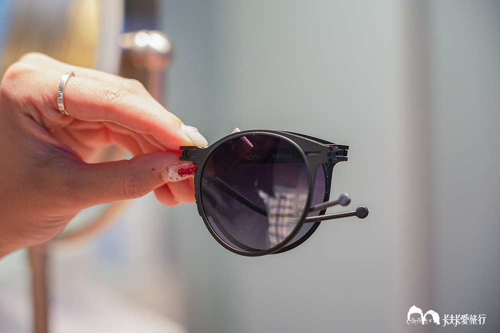 試戴到 ROAV 的時候,我真的有被驚到一副墨鏡竟然可以這麼輕、這麼薄!來自美國洛杉磯的品牌 ROAV 主打「極簡 × 輕量」,我拿在手上幾乎沒什麼重量,只有 15 公克,薄度居然不到 0.6mm,整個結構還是無螺絲設計,那種精準工藝感超強
