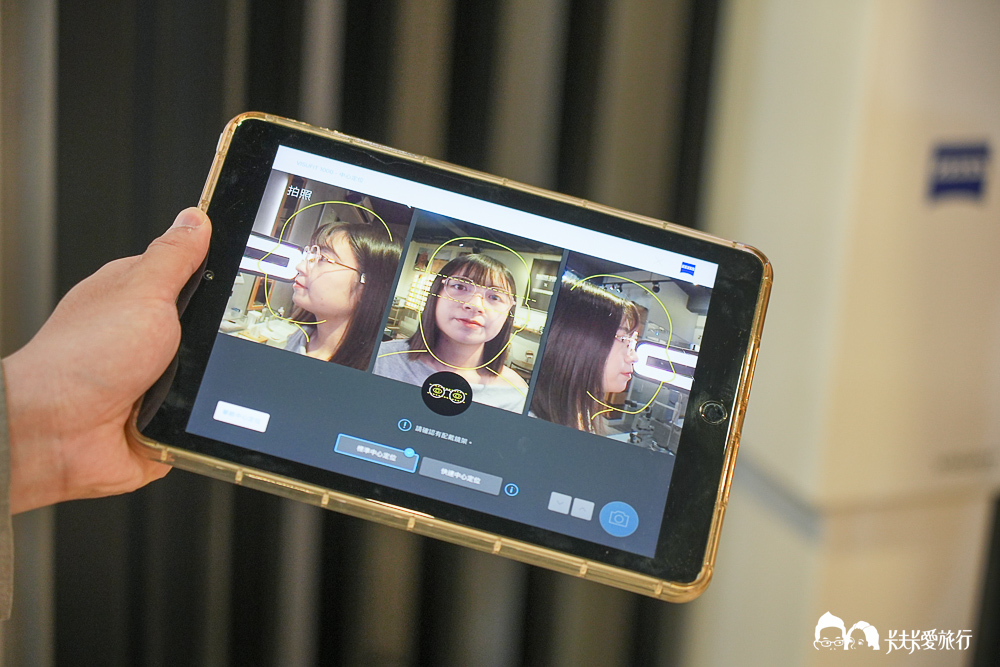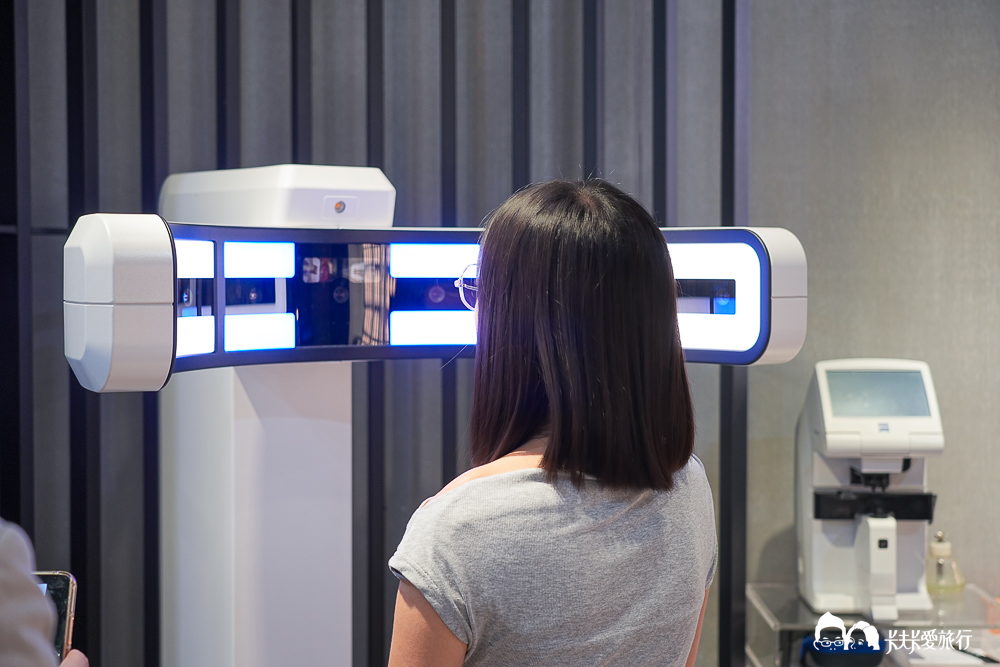 休息過後,店長帶我到一台看起來超專業的儀器前,那是一套 ZEISS 的瞳孔定位系統,這台儀器會透過多組鏡頭同時拍攝,從不同角度記錄我配戴鏡框時的狀態