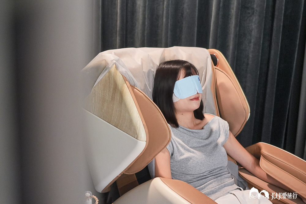 接下來進入我最期待的環節坐按摩椅!對的你沒聽錯眼鏡店裡居然有按摩椅,店長說很多客人都是下班來配眼鏡,一整天疲勞,眼睛一定是緊繃的,這時候好好放鬆一下呵護自己很重要喔