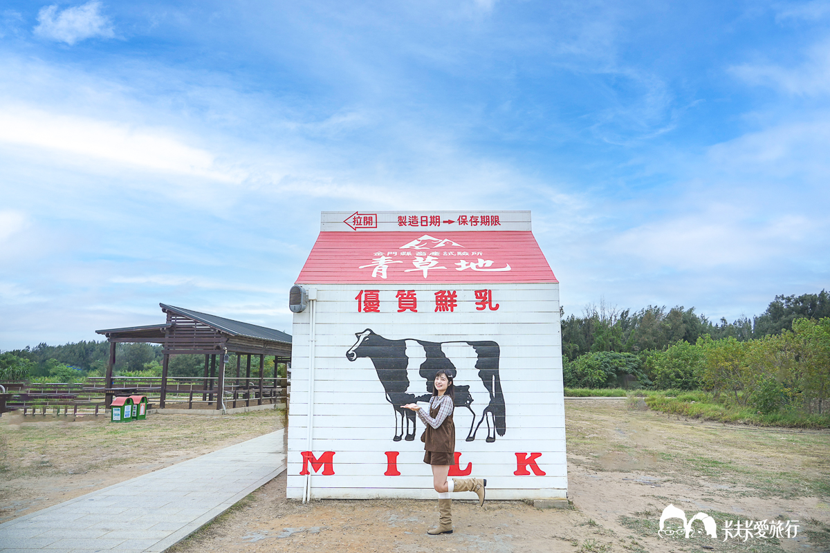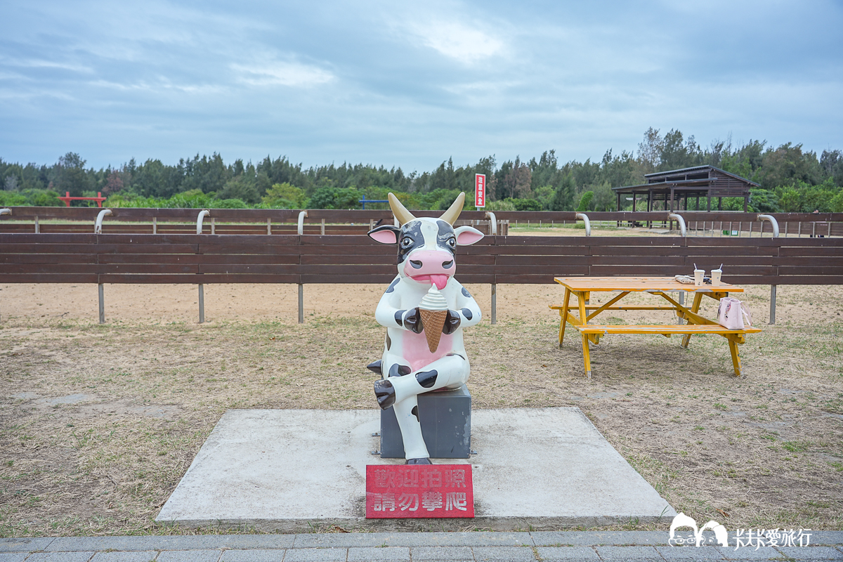 園區裡有鴕鳥、梅花鹿、金門牛等小動物,還有巨大牛奶盒裝置可拍照,記得試試青草地冰棒(20元)與瓶裝青草地牛奶(75元)喔