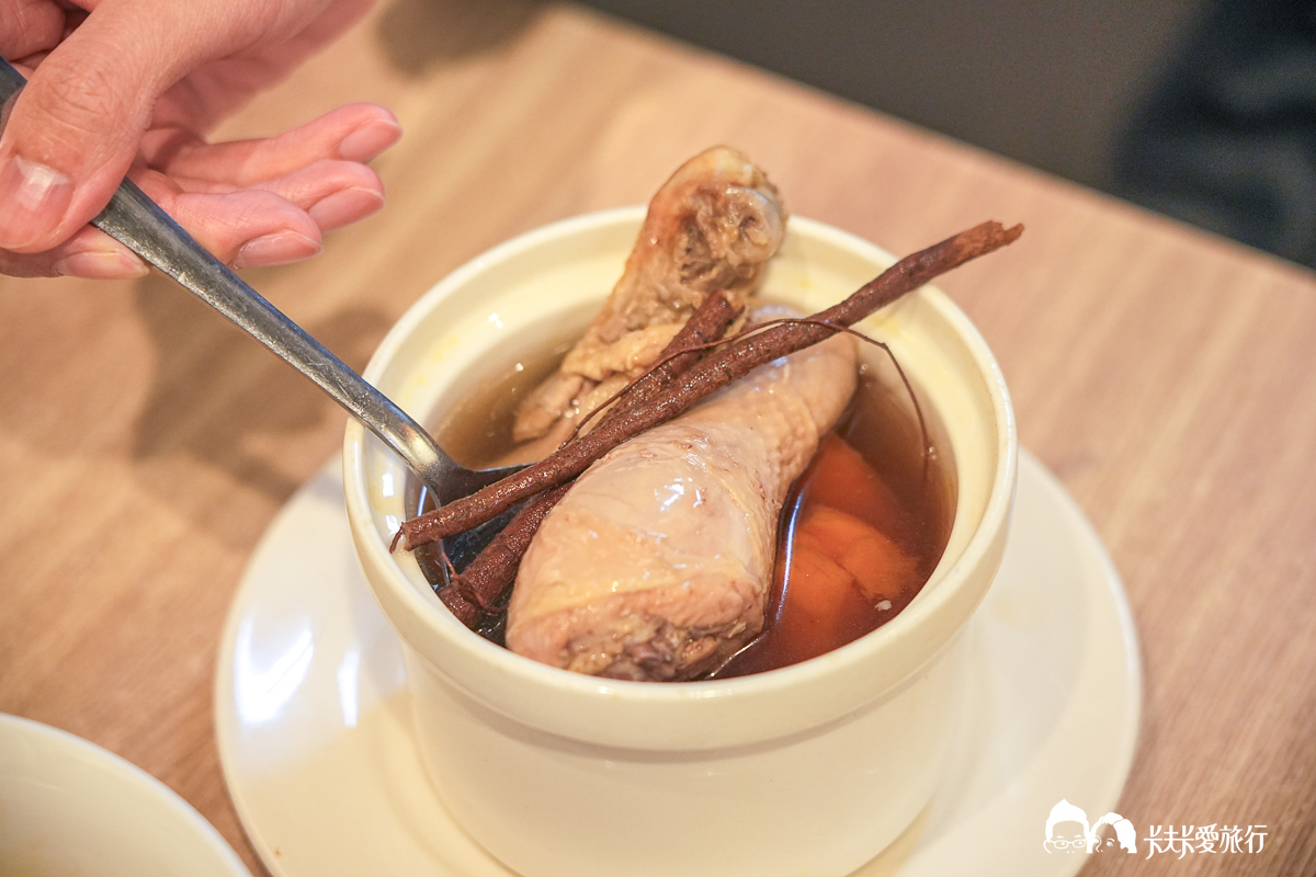 金門超人氣的文青小館,主打戰地滋味,點了最熱門的一條根雞湯與高粱肉燥飯,雞湯湯頭溫潤甘甜,肉質軟嫩