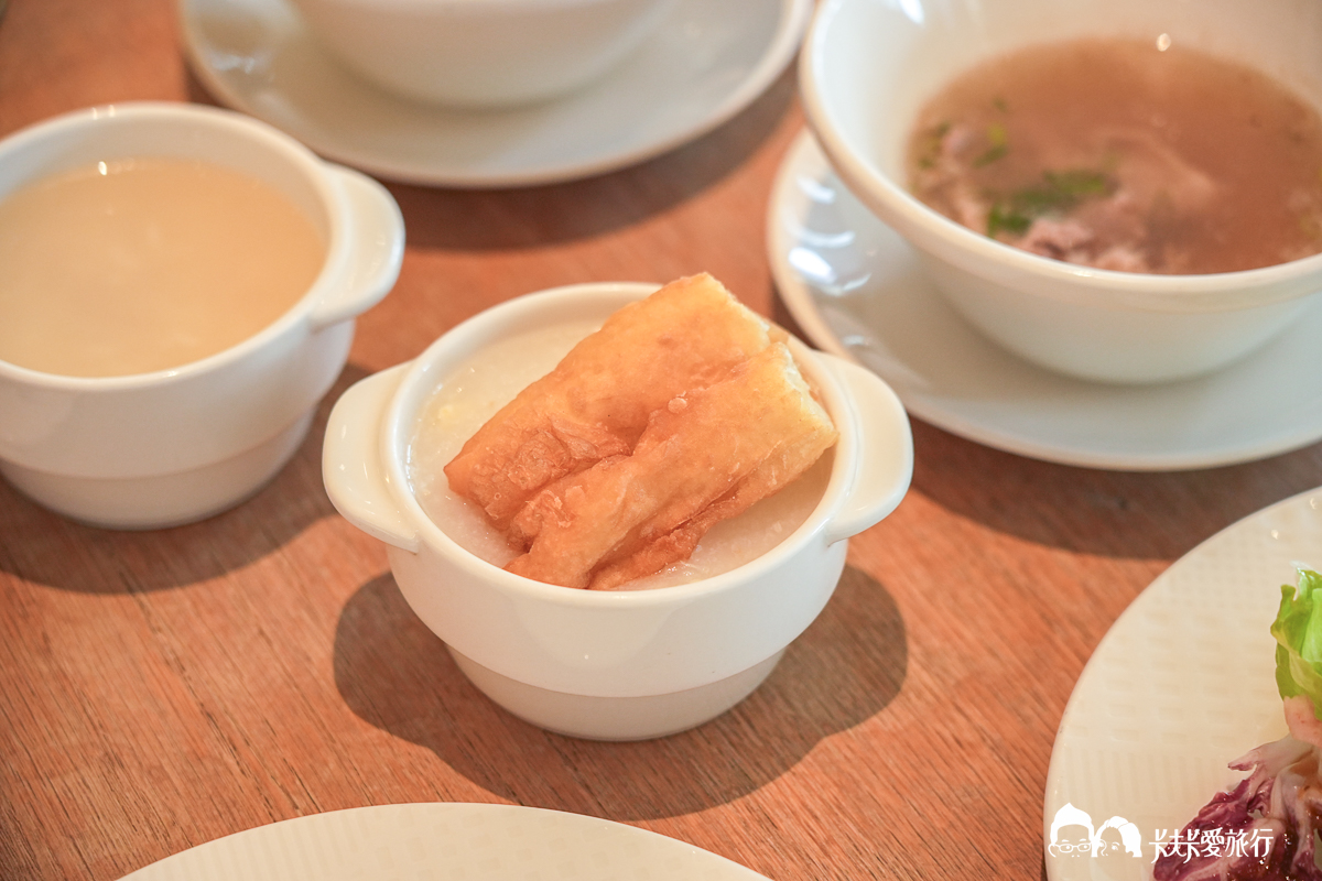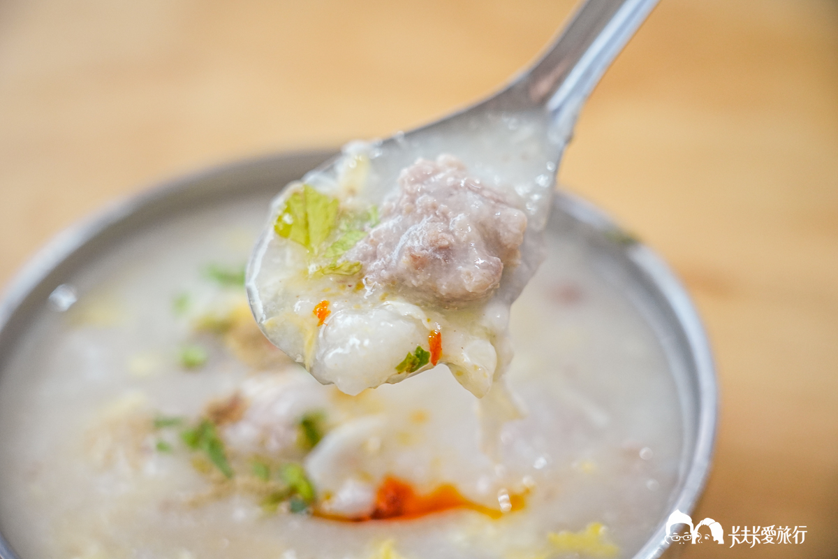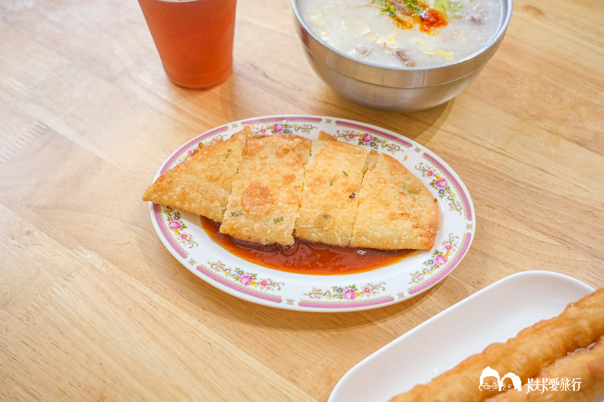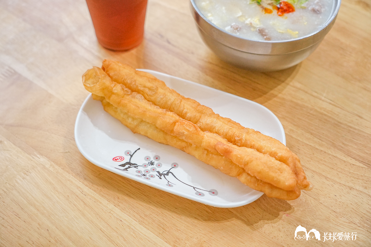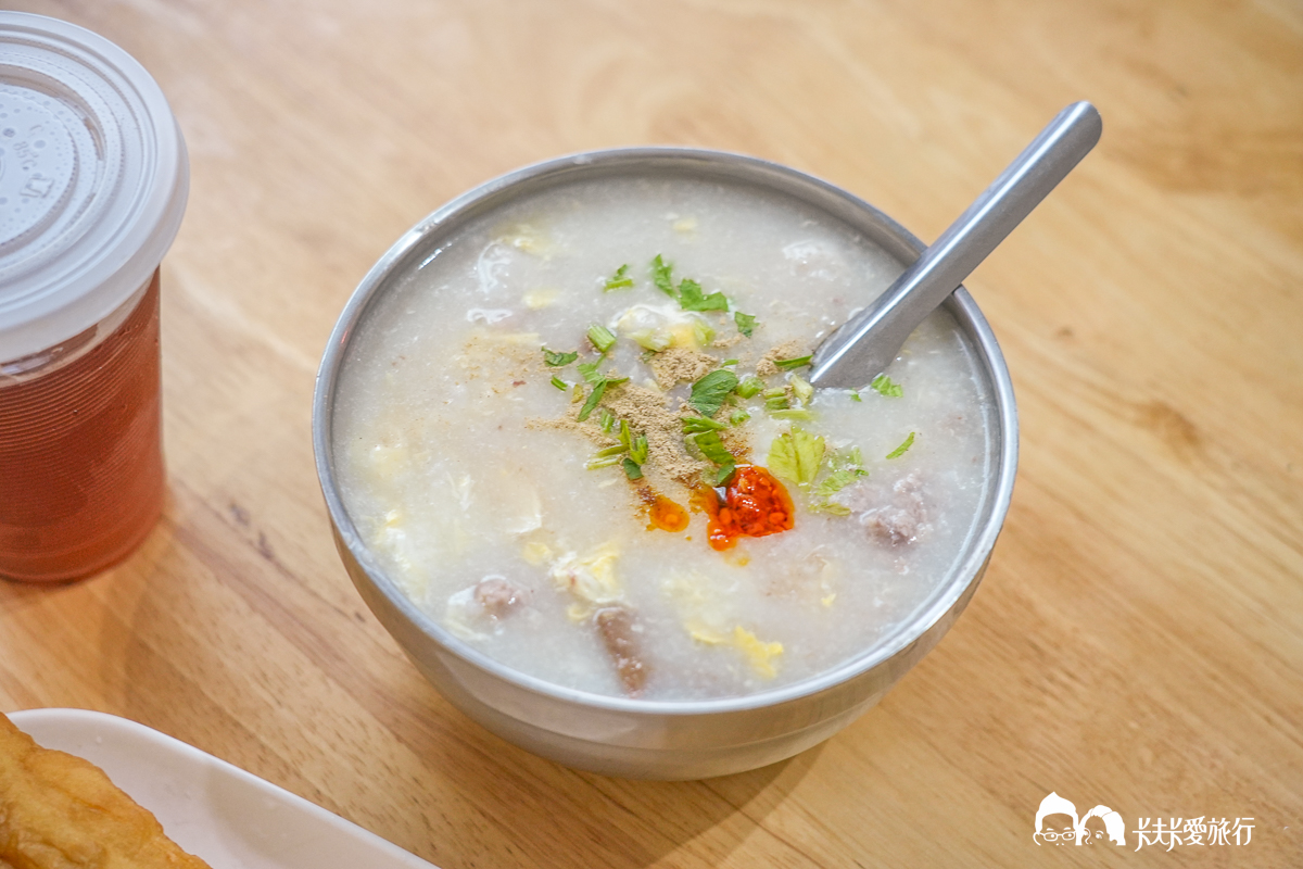 這間是在地人推的店家,我們點了廣東粥、油條、蛋餅,他們的廣東粥用料很實在,配料包括鮮肉丸、豬肝、蛋花,每一口都挖得到料;他們的蛋餅也非常好吃,是脆蛋餅的路線,有點趨近於炸蔥油餅的口感