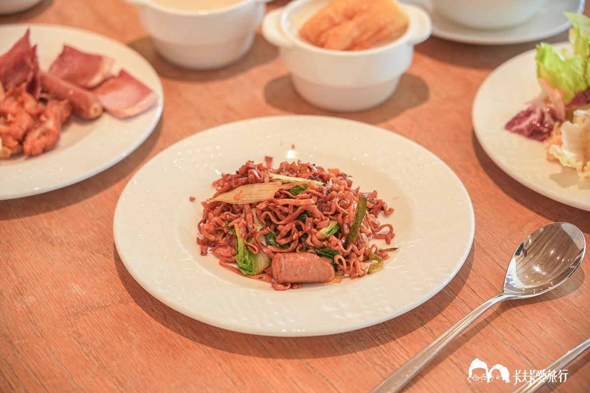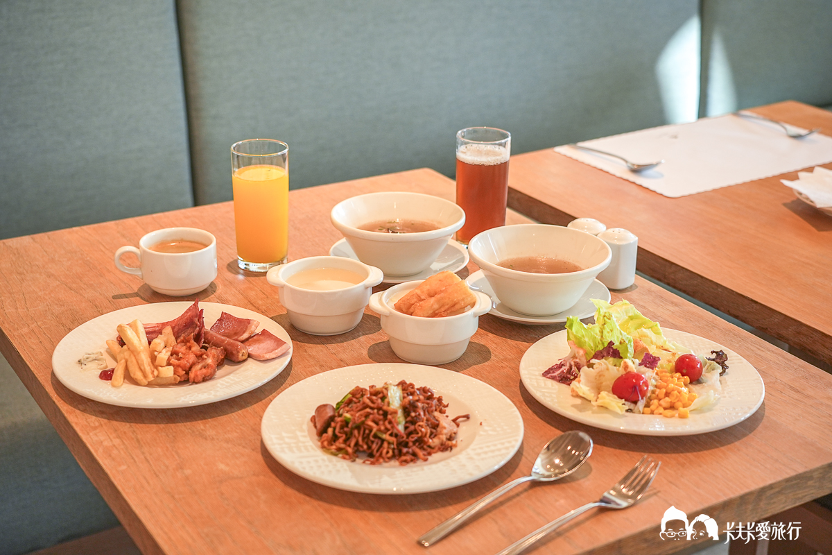 早餐採自助式,除了常見的中西式料理之外,還有融入在地5種特色美食,像是戰地炒泡麵、清燉牛肉麵、金門廣東粥、金門麵線以及金門油條