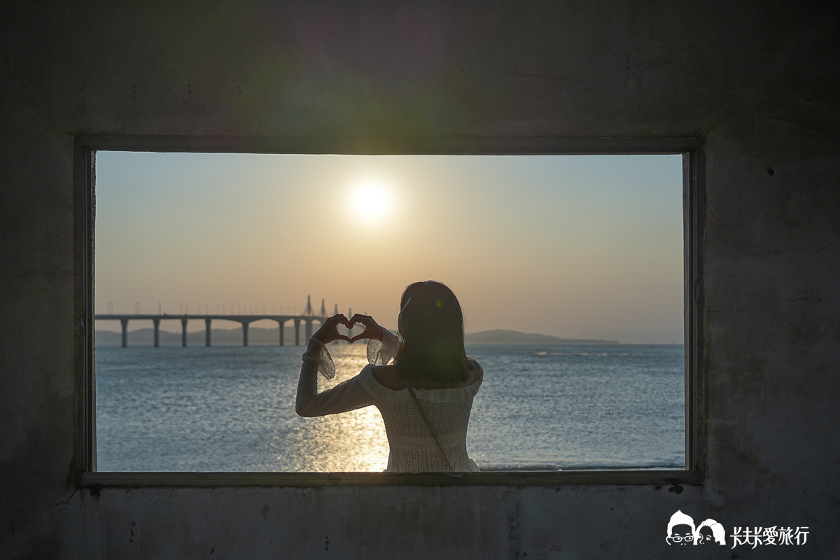 走到一座廢棄的海巡哨站,往窗邊一站就會有不一樣的驚喜!宛如畫框一般,將人物+金門大橋+夕陽一同捕捉,是最美的風景