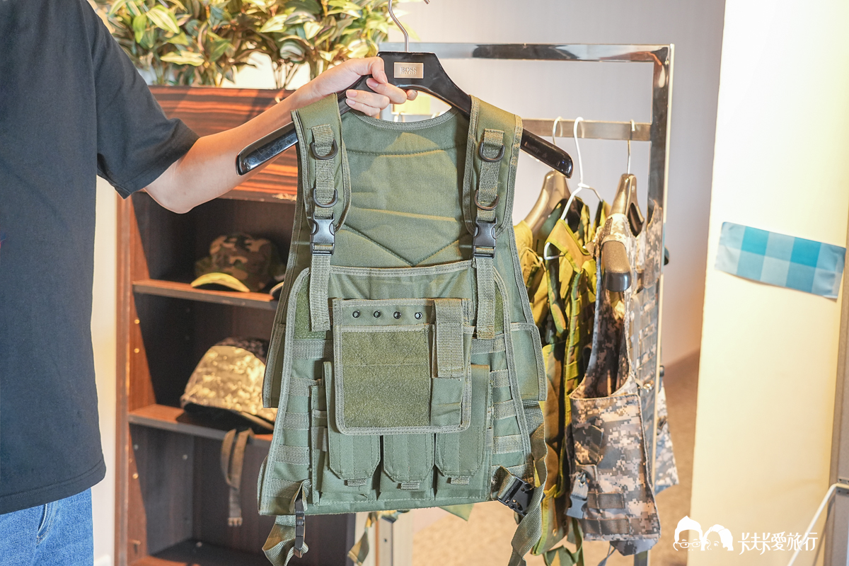 在飯店裡竟然可以體驗當軍人!戰地小學堂有提供戰術背心、迷彩服以及軍用帽