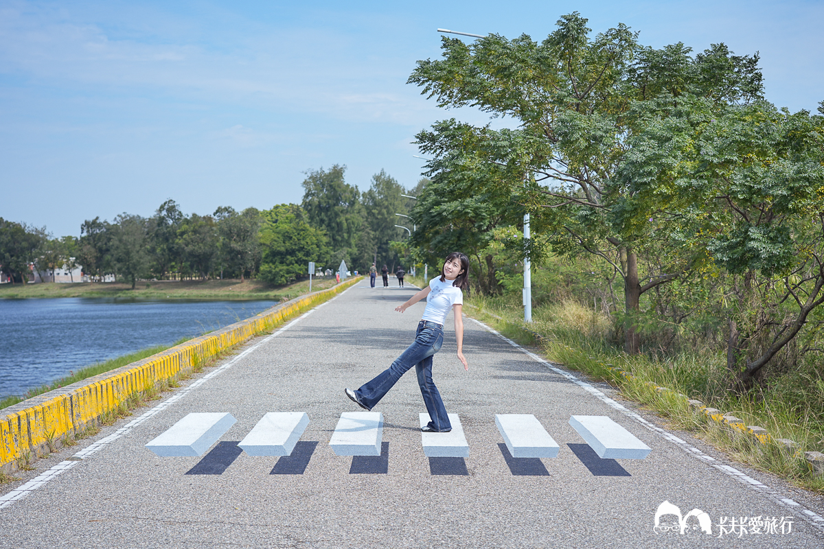 在金湖飯店出發騎車3分鐘就到囉!住客也可以「免費」租借腳踏車環湖,這裡絕對是金門最熱門的打卡點之一,來到漂浮斑馬線,有種漫步在空中的感覺呢