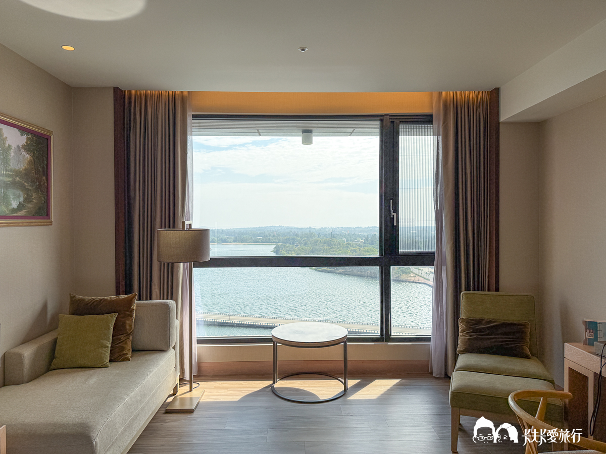 我們這一次選擇的住宿,是金門當地第一間「五星級規格的國際觀光飯店」,因為看中它的地理位置,就在太湖旁邊,還可以遠眺太武山,隔壁是免稅店「昇恆昌金湖廣場」,食衣住行育樂一站購足!