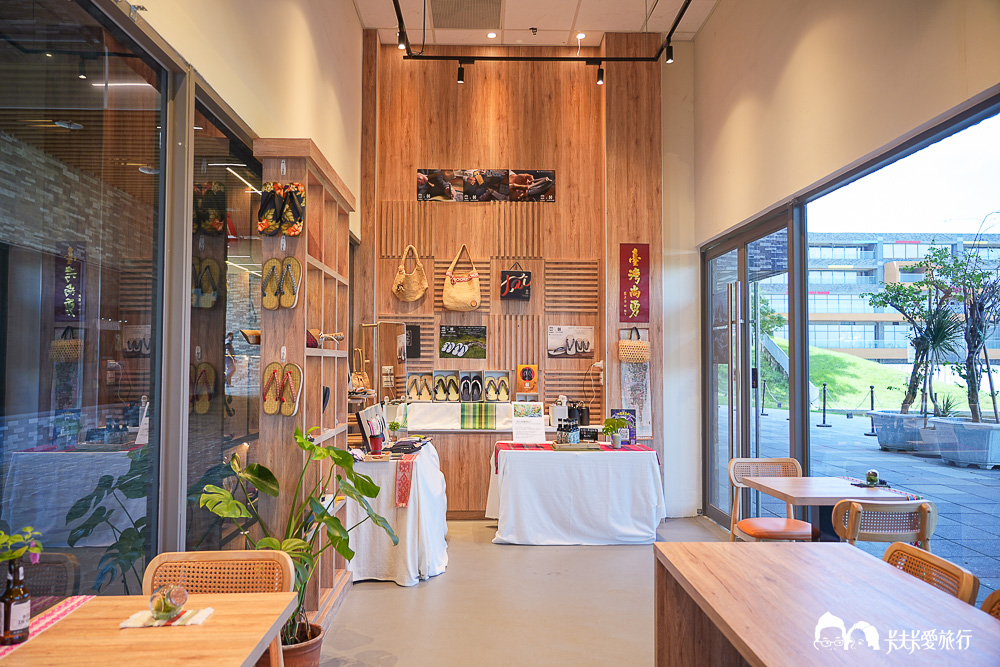 第一站先來到台灣泰雅,離捷運站最近的一間店,也是我們很愛的手搖飲店(他們家的珍奶超好喝),走進店裡會有暖暖的木質空間,陽光透過落地窗灑在展示台上,一雙雙織帶木屐、手作小物