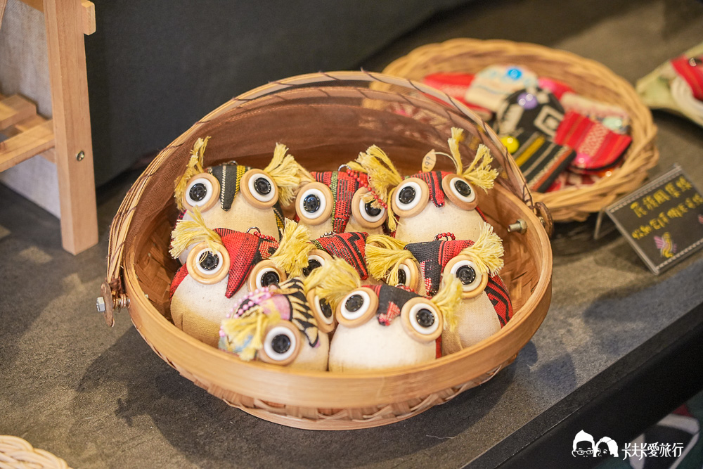一旁的衣架上掛著色彩柔和的手作上衣,吊卡印著部落故事的圖騰,轉過身,又會看到工坊最受歡迎的小貓頭鷹布偶,一籃一籃圓滾滾地坐著,每隻都長得不太一樣,眼神滿滿個性