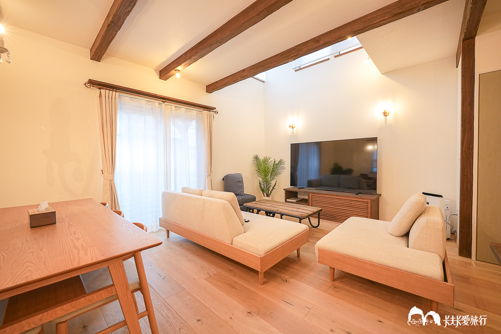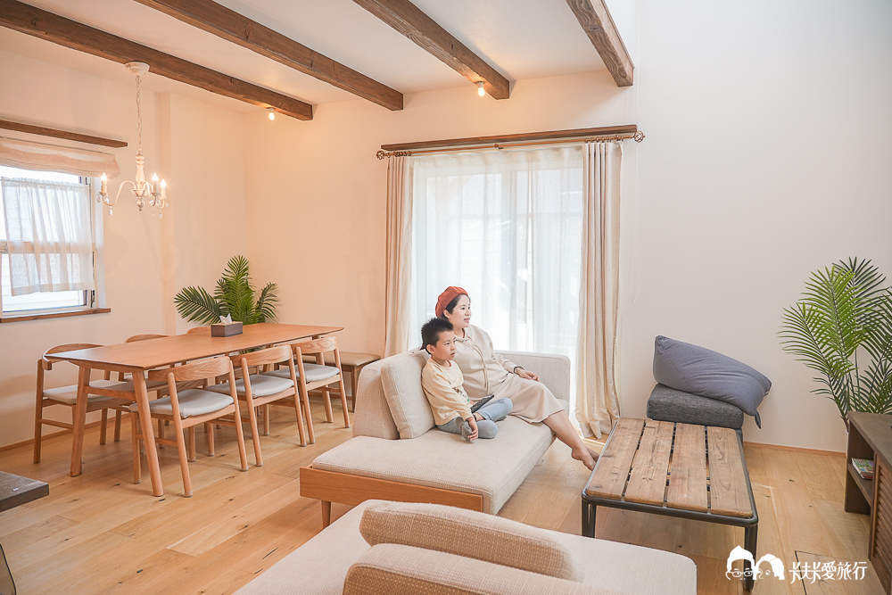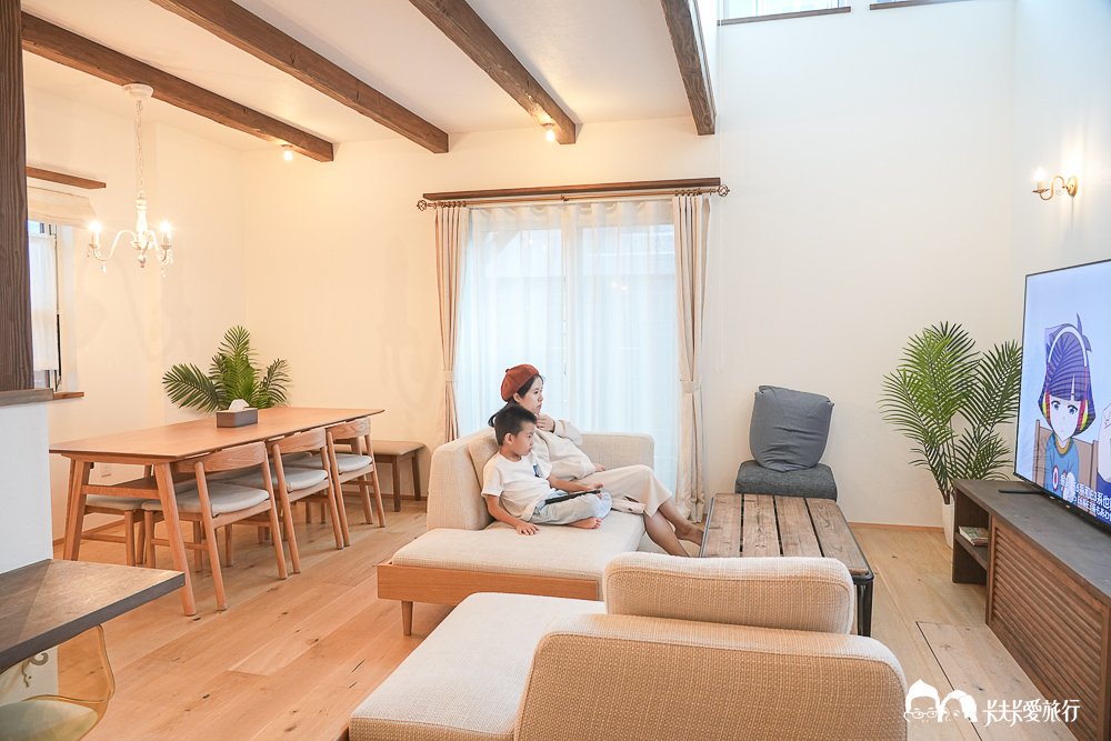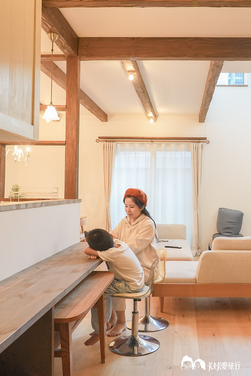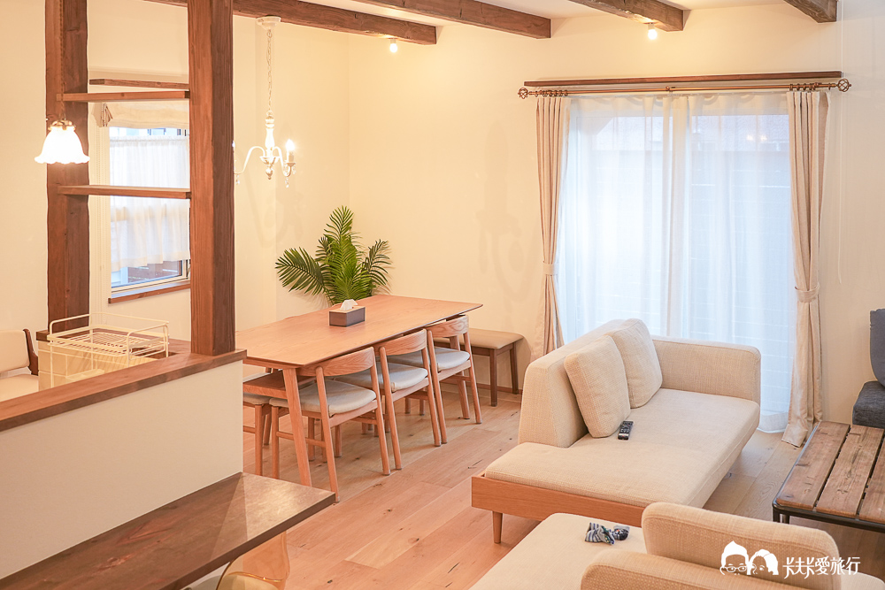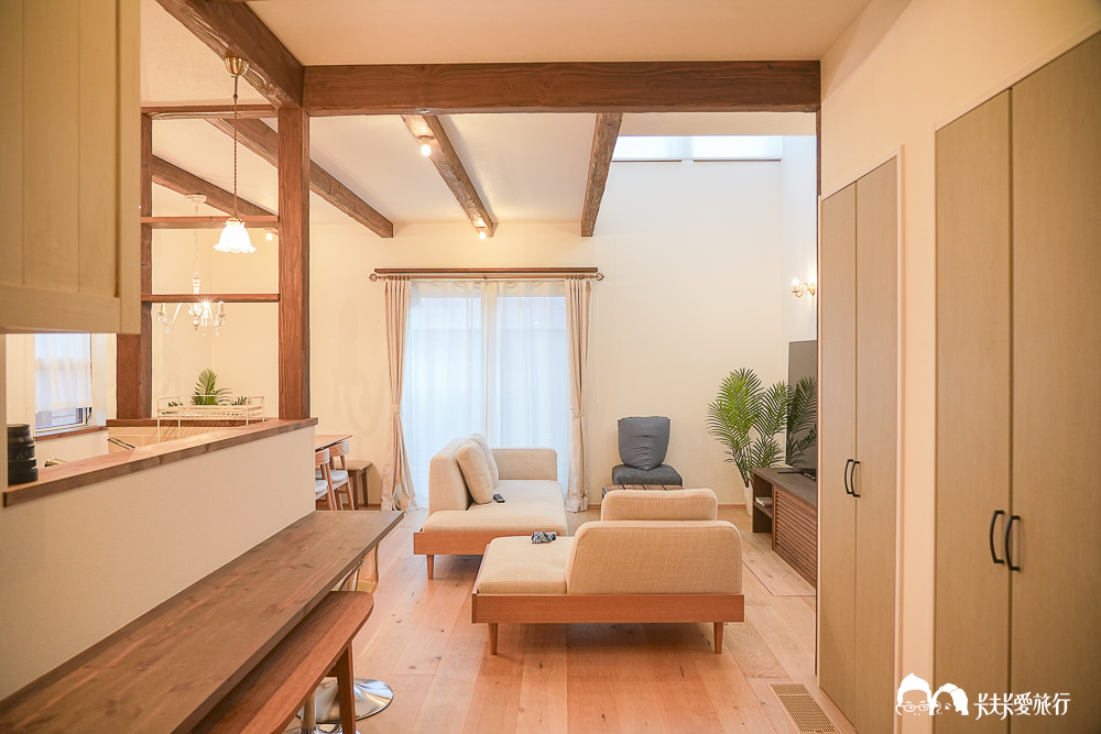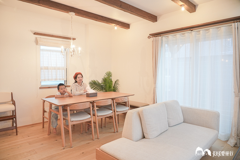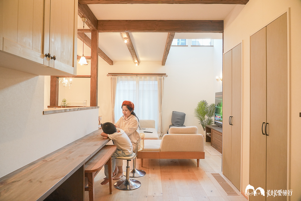 整棟以溫潤的木質調為主色,從地板、傢俱到窗框,都散發自然的風格,搭配柔和燈光,白天光影灑在木地板上,夜裡又多了一份安靜的氛圍,讓人真的有種「在日本朋友家借宿」的感覺