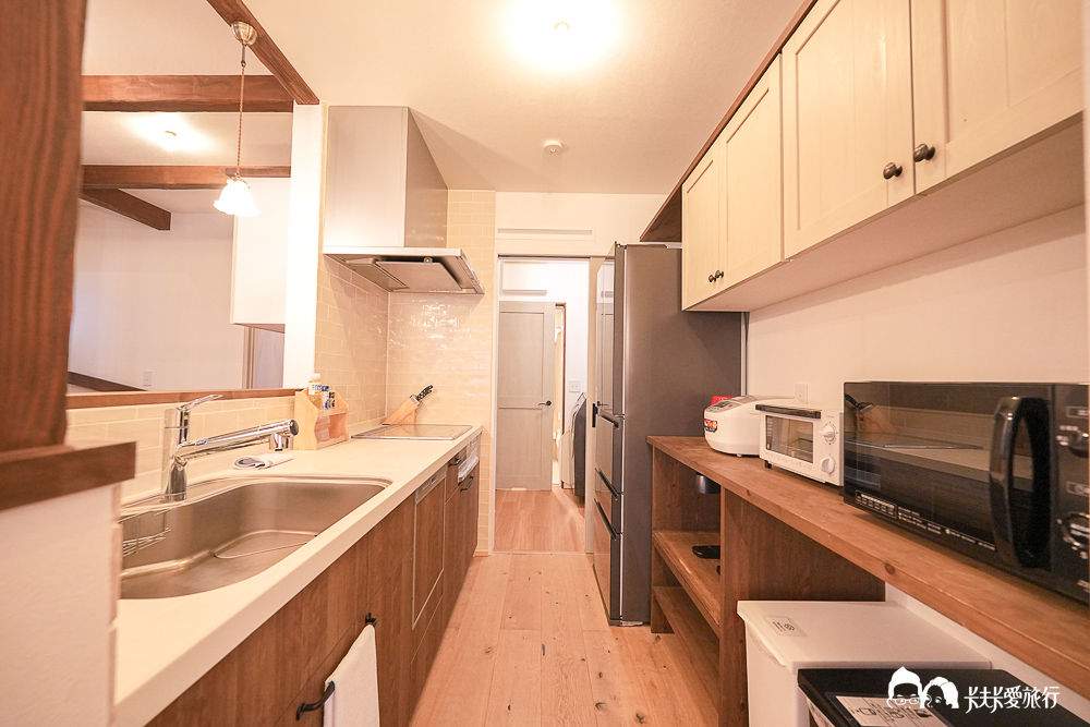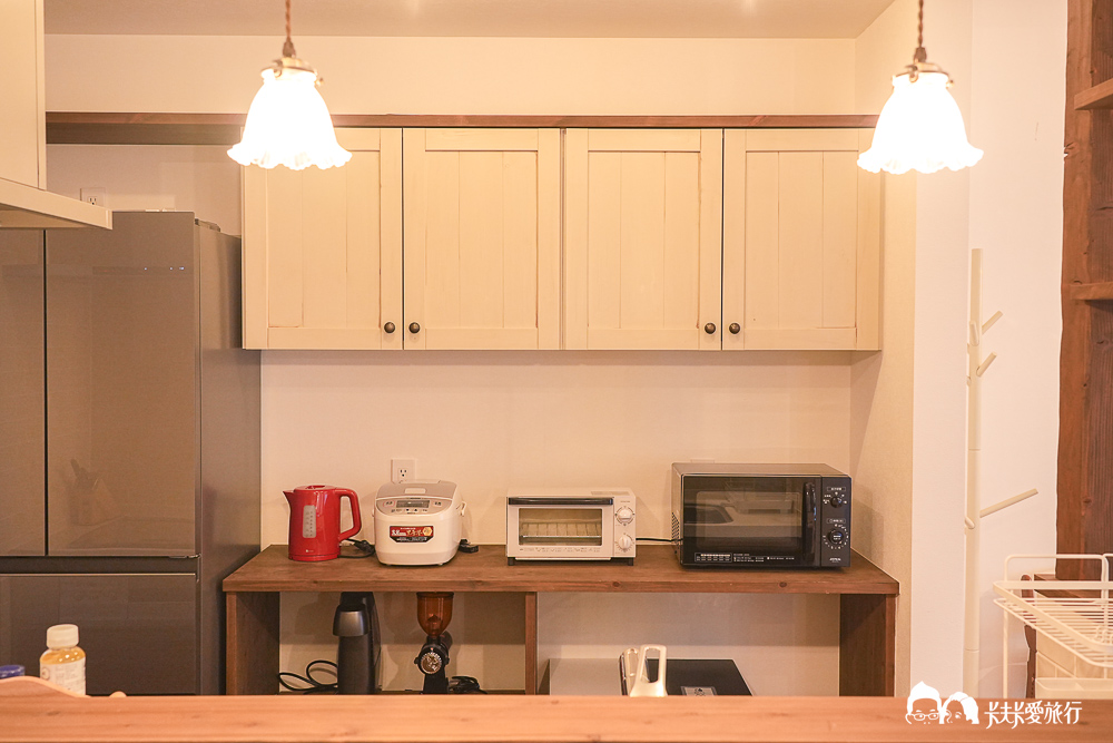 旅行不一定要天天外食,尤其帶著孩子或長輩同行,能自己煮飯其實是一種幸福,美黛子NO.11 木光煦日民宿的廚房設備齊全:IH爐、電子鍋(煮飯)、微波爐、冰箱、餐具、調理器具一應俱全
