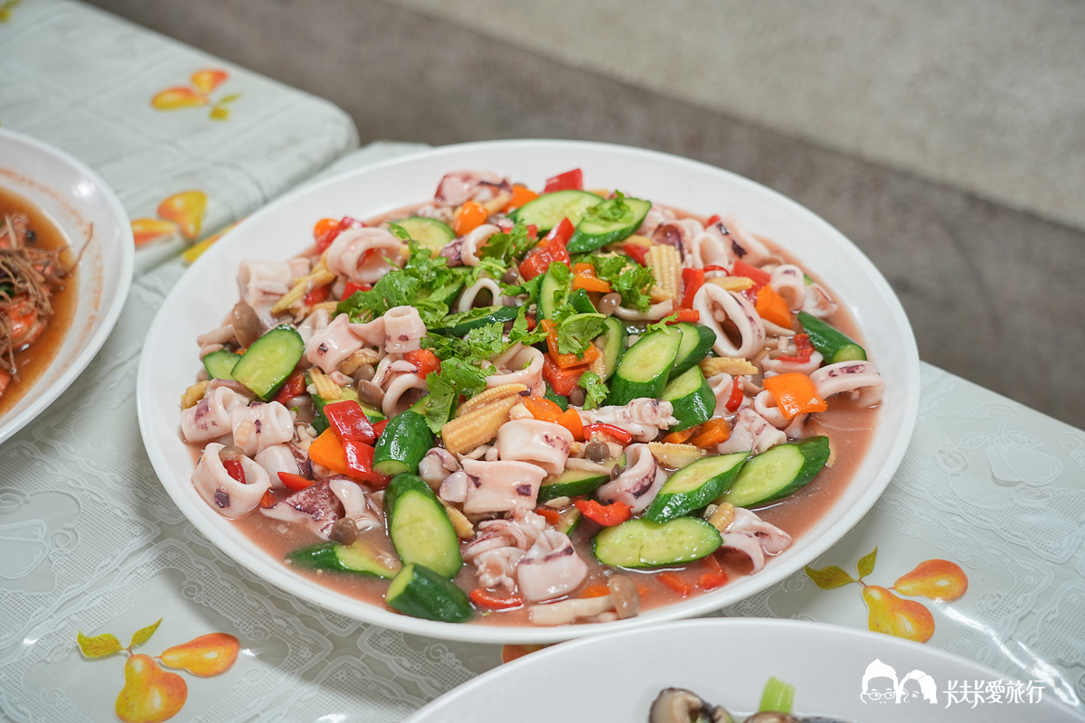 還有園區準備的「產地到餐桌漁村風味餐」,吃到各式碳烤海鮮、竹筒碗糕,還有我們自製的蚵仔碗粿
