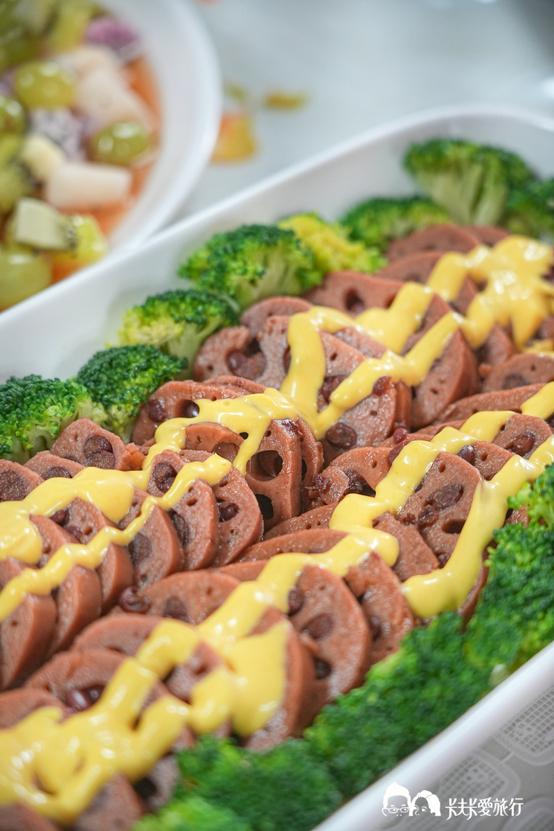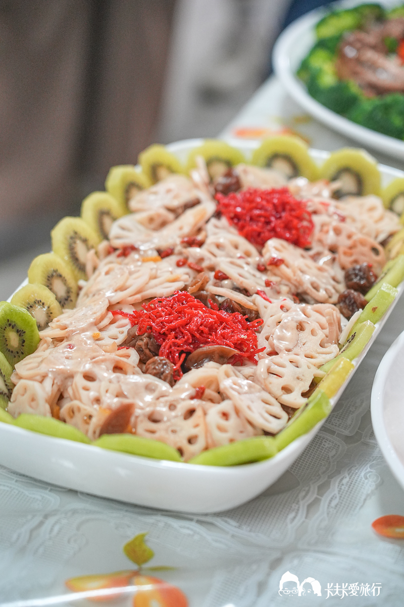 這兩道蓮藕料理,鑲入紅豆的蓮藕口感層次豐富、香氣溫潤;另一道涼拌藕片則是酸甜脆口,夏天吃很清爽喔