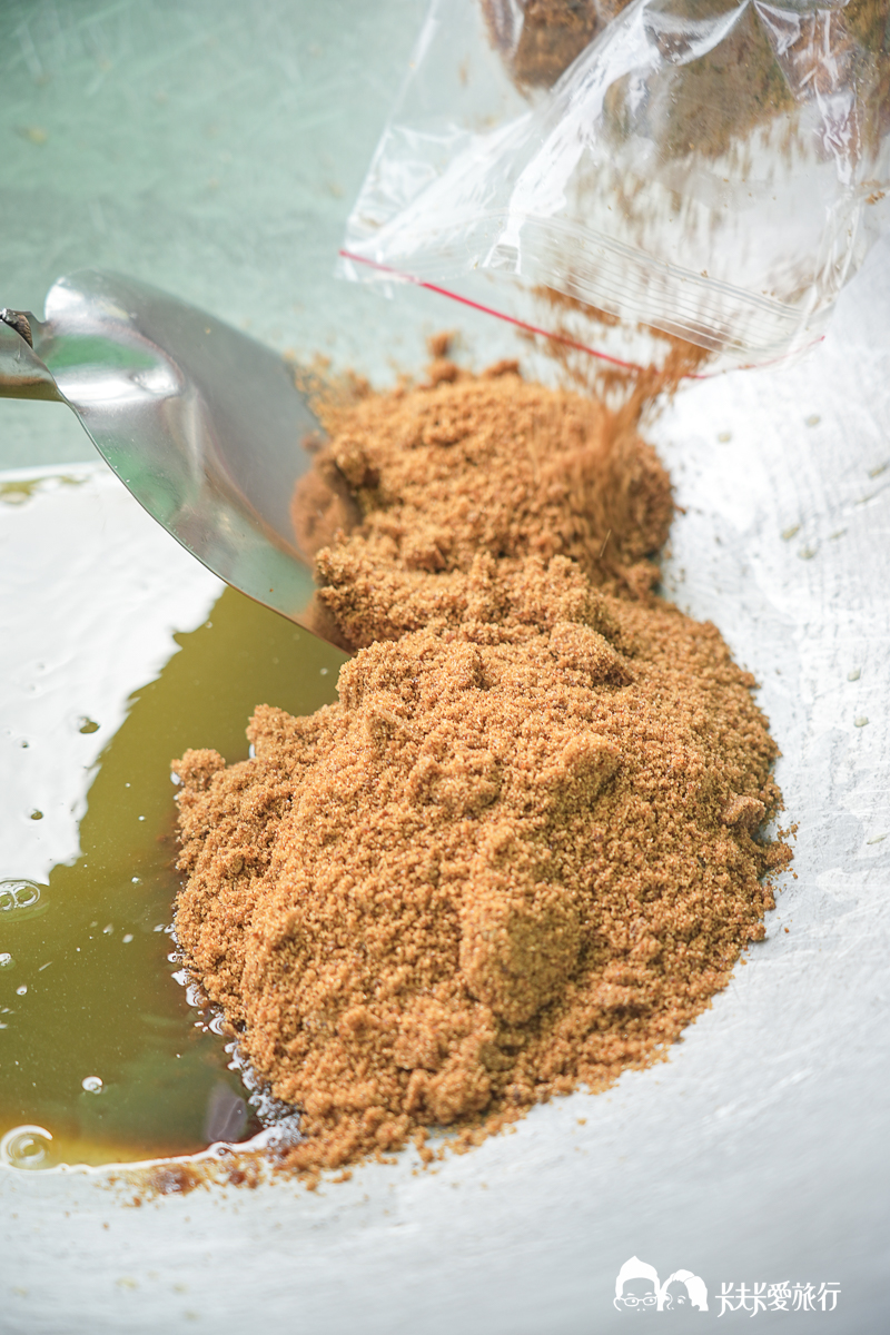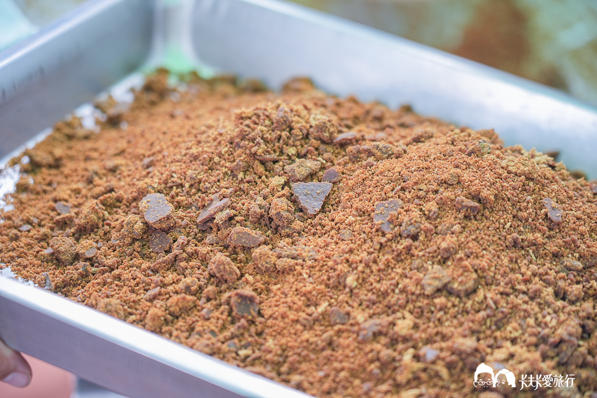 都刮下來後就是我們平常常見的黑糖啦,現炒黑糖還熱乎著,帶點焦香味好好吃呀