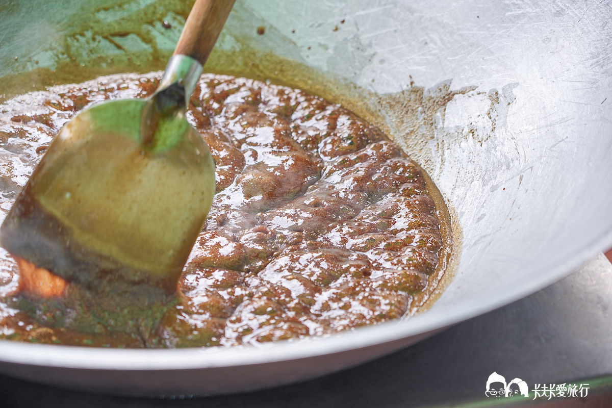 熬製黏稠狀態,再慢慢等待收汁,這個過程會冒出蒸氣,有點像看到火山岩漿的既視感,空氣中都飄著甜甜的味道,難怪人家都說:「台南連空氣都是甜的」