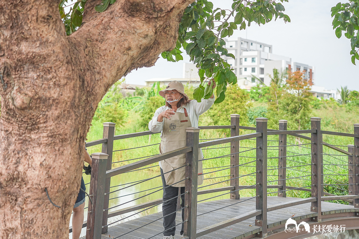 導覽員帶著我們漫步在生態池及水圳步道,一一介紹植物與物種的多元性