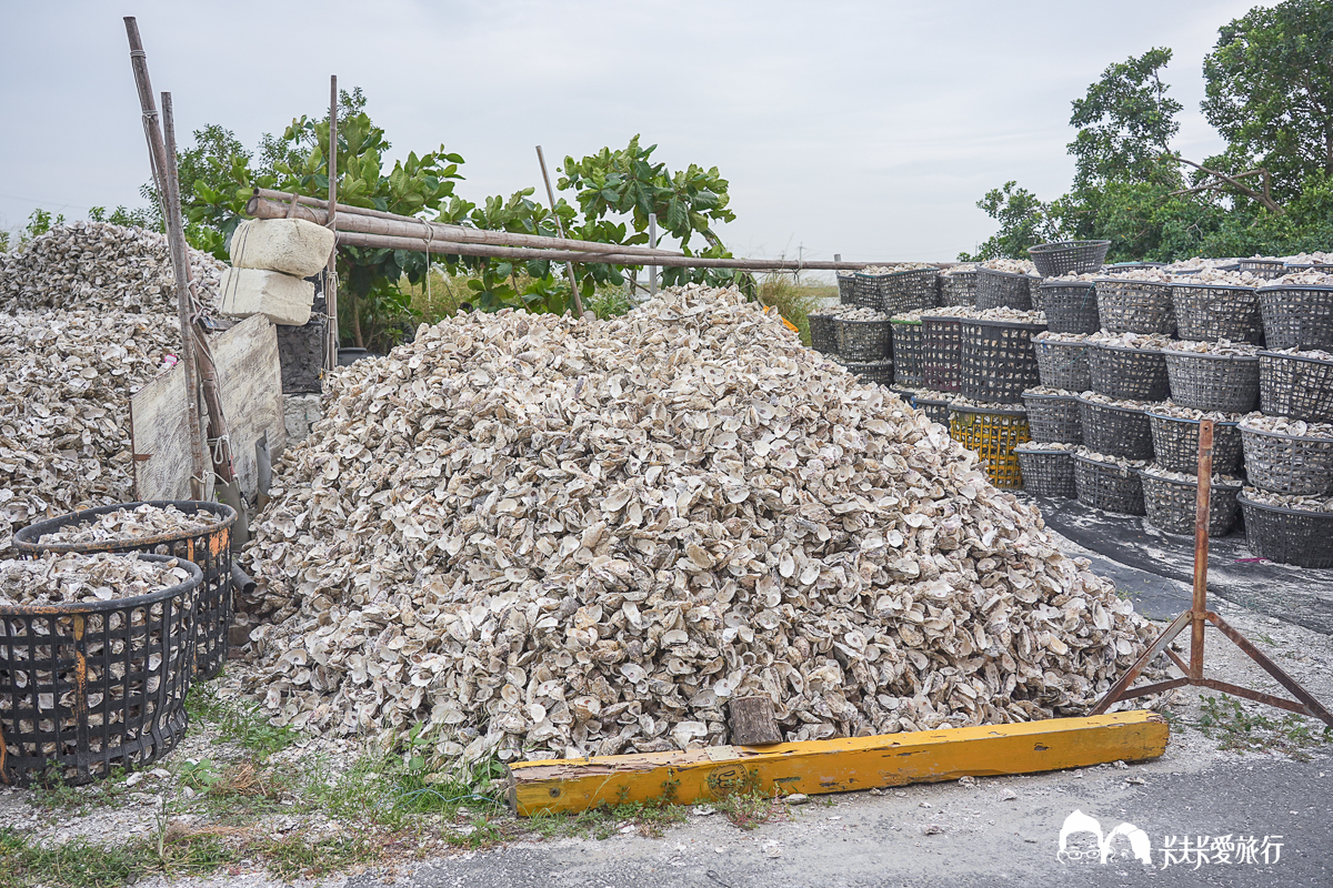 一下車到蘆竹溝社區就看到滿山滿谷的蚵仔殼,這樣的場景平常很少看到,超壯觀耶