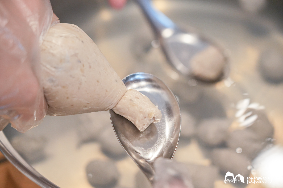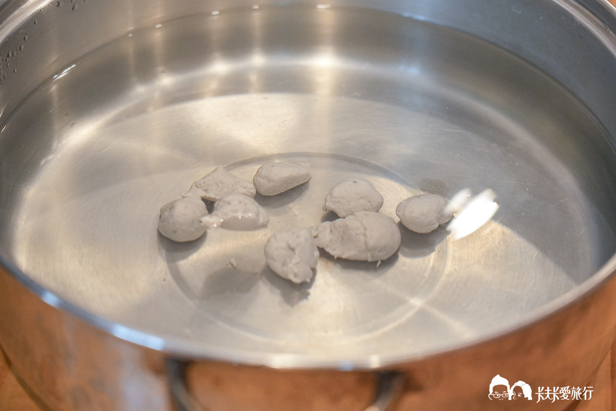 平常在市場會看到現做魚丸的畫面,攤販都會很迅速地將魚漿擠到圓滾滾的狀態,再馬上加入水中定型,虱目魚丸也是一樣的做法