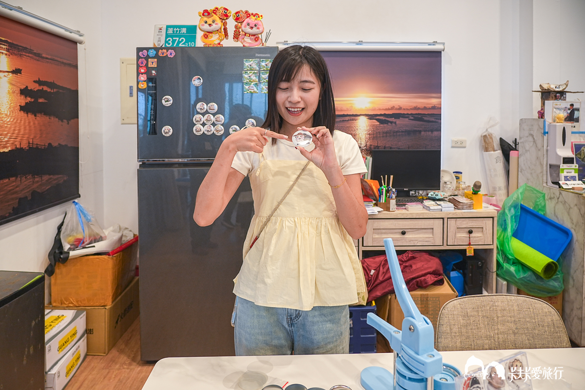 將選定的圖案與透明膜進行手壓,也可以做成磁鐵、書籤與鑰匙圈等文創小物