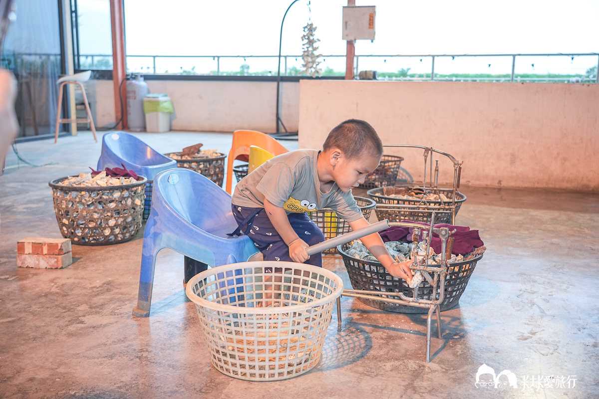 走到底就看到我們的目的地-蘆竹溝蚵學園區,這裡平時就會舉辦食農教育等活動,帶我們直接走入食材產地,用最直接的方式認識蚵農的日常勞作與養殖技術喔